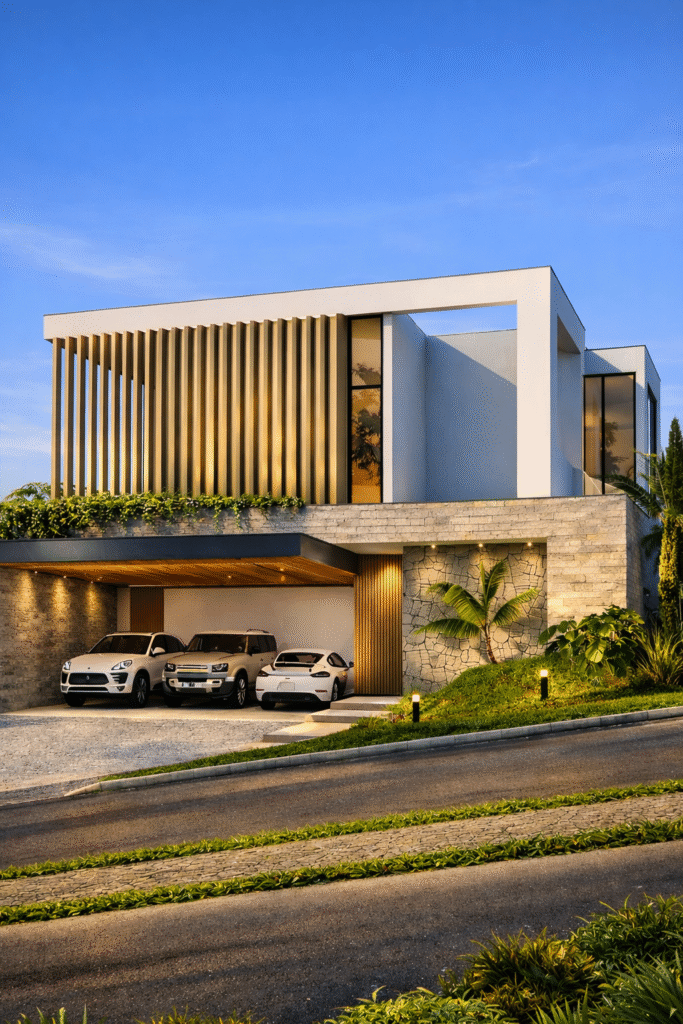 A Casa Vértice, com quase 400m², representa o alto padrão da Guerra Empreendimentos. Com arquitetura contemporânea, reúne tecnologia, conforto e ambientes completos para viver e receber.